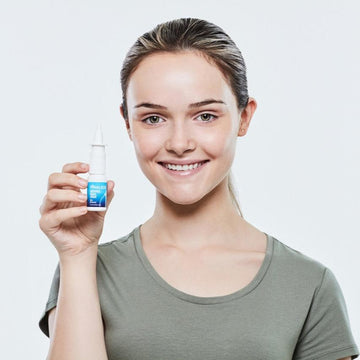 Close one nostril by pressing on that side of your nose, and gently insert the nozzle into the other nostril, pointing it away from the centre of your nose. Press down on the pump to activate the spray while gently breathing in (normal breathing). You don’t need to take a deep breath when applying the nasal spray.